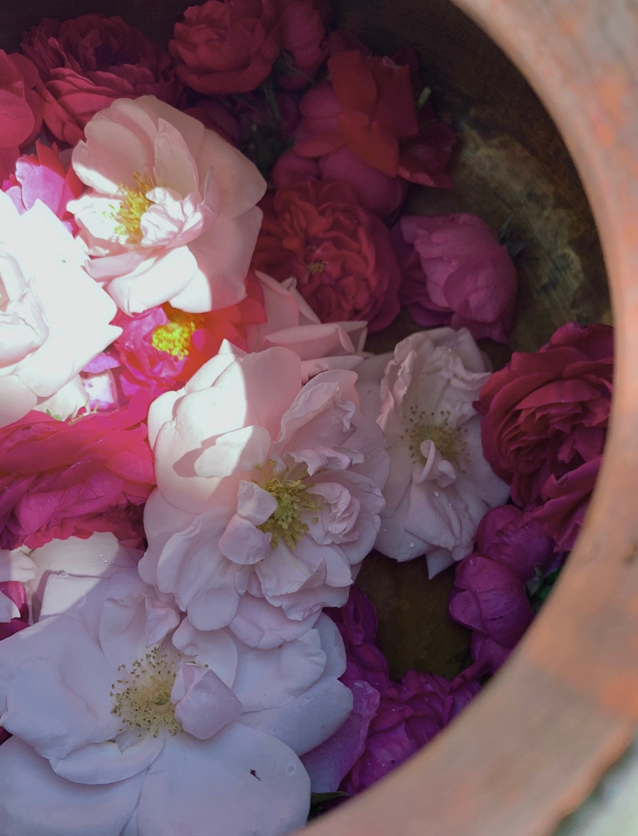Oak & Ephemeral rosewater is distilled from old perfume variety roses grown with organic culture practices. The ancient Damask, Once blooming Moss, elegant Galicia, vibrant hybrid rugosa & heady Bourbon roses are picked by hand in the spring and distilled slowly over an entire month or longer by myself to produce a dynamic blend of rosewater completely unique to my farm and bio region.